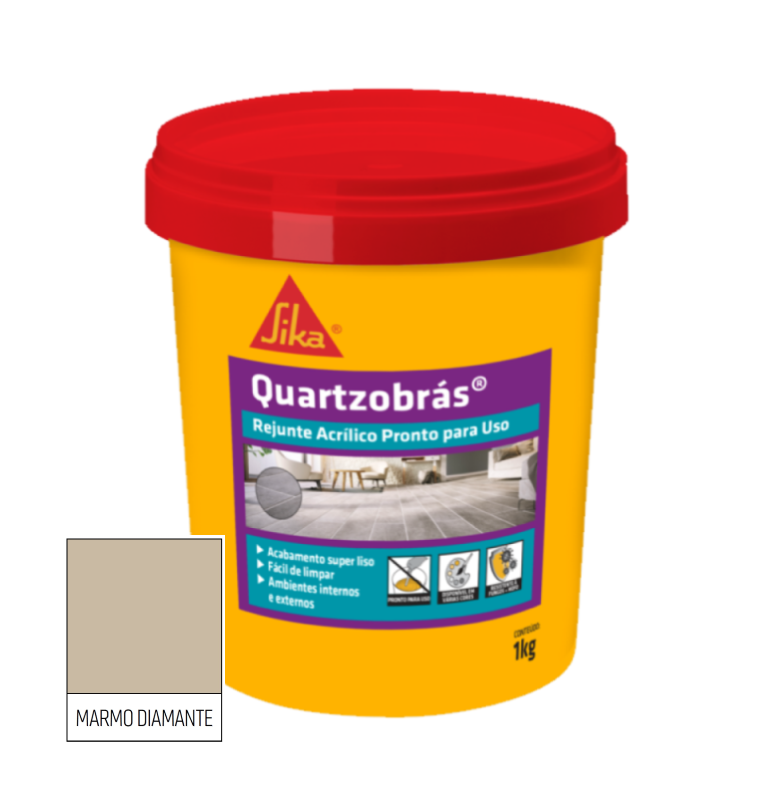 O Rejunte Acrílico Marmo Diamante Quartzobrás é formulado à base de resinas acrílicas, minerais ativos, cargas minerais, aditivos especiais, biocida e pigmentos inorgânicos.
